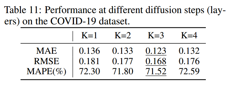 高阶扩散信息有利于提高预测精度,但随着阶数的增加,扩散信息的影响会逐渐减弱,甚至会给预测带来噪声