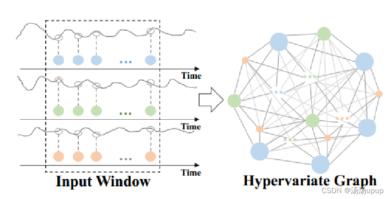 这里的节点代表每个序列的采样点,边是全连通的,对于一个长度为T有N元的时间序列来说,超图具有NT个节点。