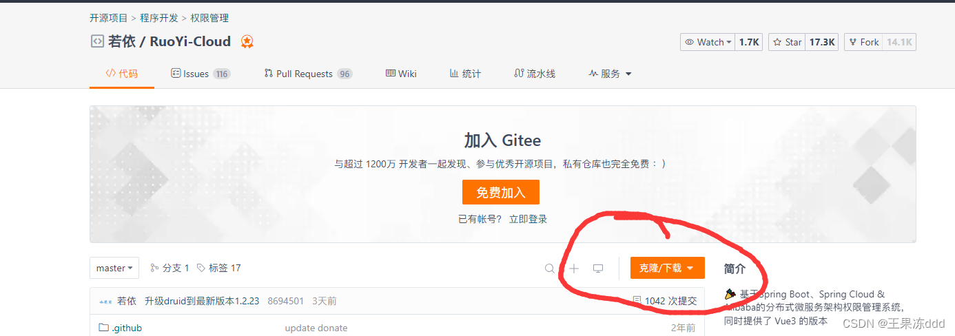 1.进入若依官网获取git地址