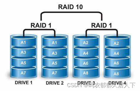 两个独立的奇偶系统使不同的算法,及时两块磁盘失效也不影响数据,但是比RAID 5有更大的写损失
