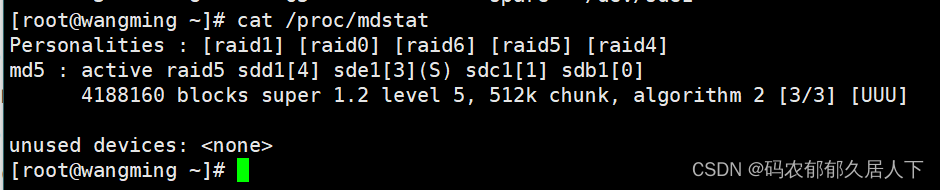 mdadm -D /dev/md0 ##查看磁盘详细信息
