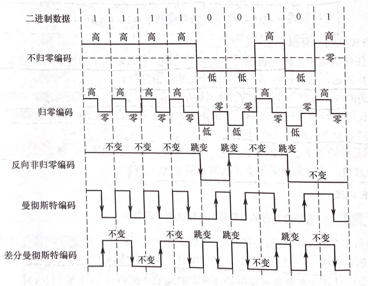 | 差分曼彻斯特编码【广泛用于宽带高速网中】 | 关注每个信号周期的起点是否有跳变,跳0,不跳1,中间必变; 抗干扰强 | 浪费带宽 |