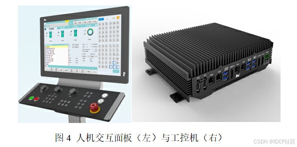 该数控系统产品为典型的嵌入式系统产品,该产品的硬件最小集包括工控机(IPC)、人机交互面板(HMI),如图4所示。IPC并通过HDMI和USB接口与HMI进行I/O通信。在IPC中运行实施操作系统(RTOS)及功能软件产品。