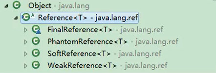 这4种引用强度依次逐渐减弱。除强引用外,其他3种引用均可以在 java.lang.ref 包中找到它们的身影。如下图,显示了这3种引用类型对应的类,开发人员可以在应用程序中直接使用它们。