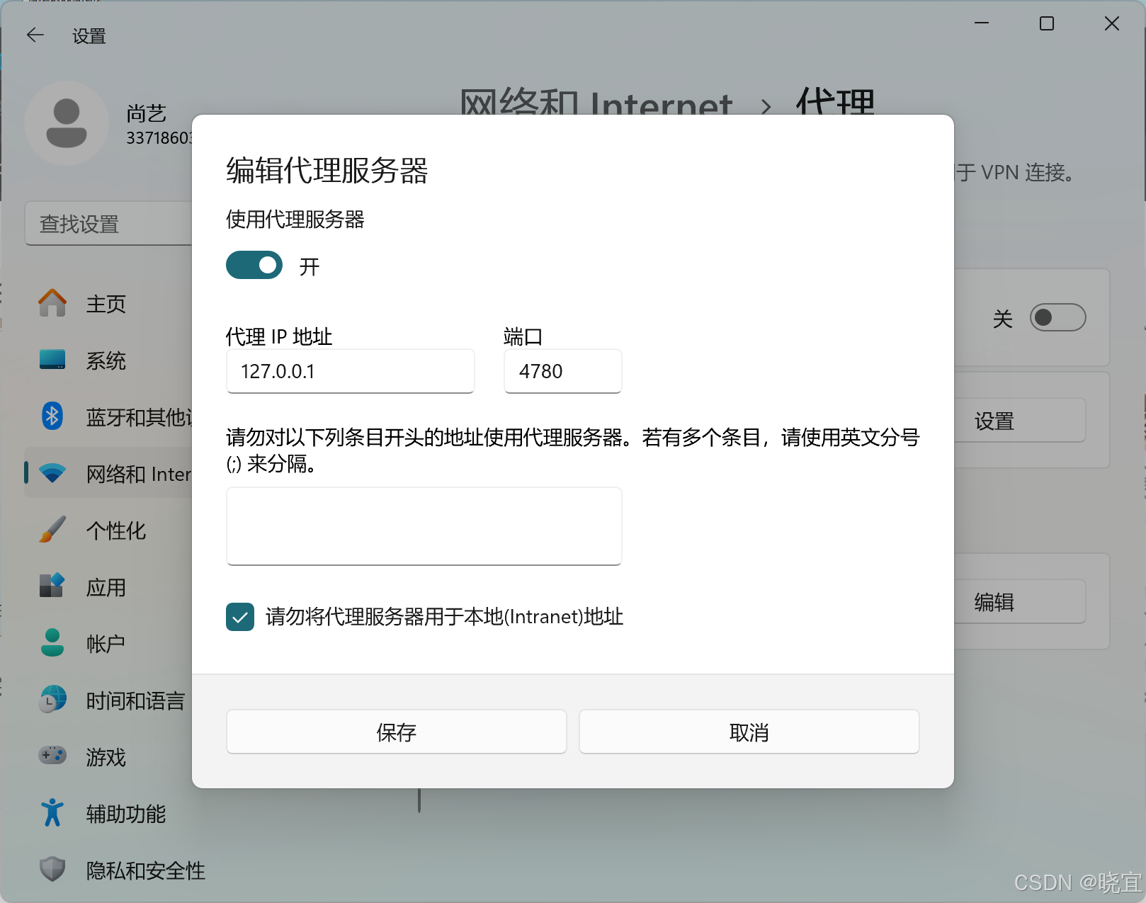 搜索:代理,进入 代理服务器设置
