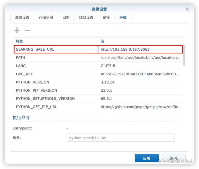 软件的安装比较简单,如果你之前已经单独安装过 SearXNG,那么只要安装 Search4All 即可,图形化安装和 docker cli 都只是安装了 Search4All