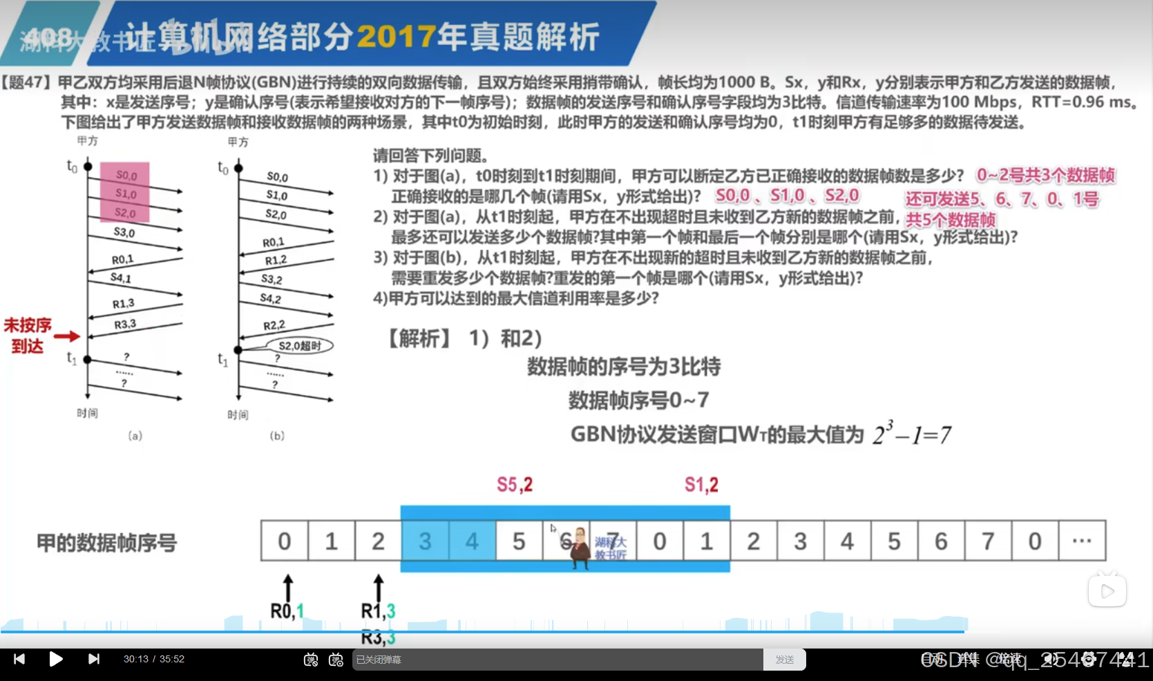 【CN】数据链路层.滑动窗口.GBN协议传输过程信道利用率分析_哔哩哔哩_bilibili okokokok