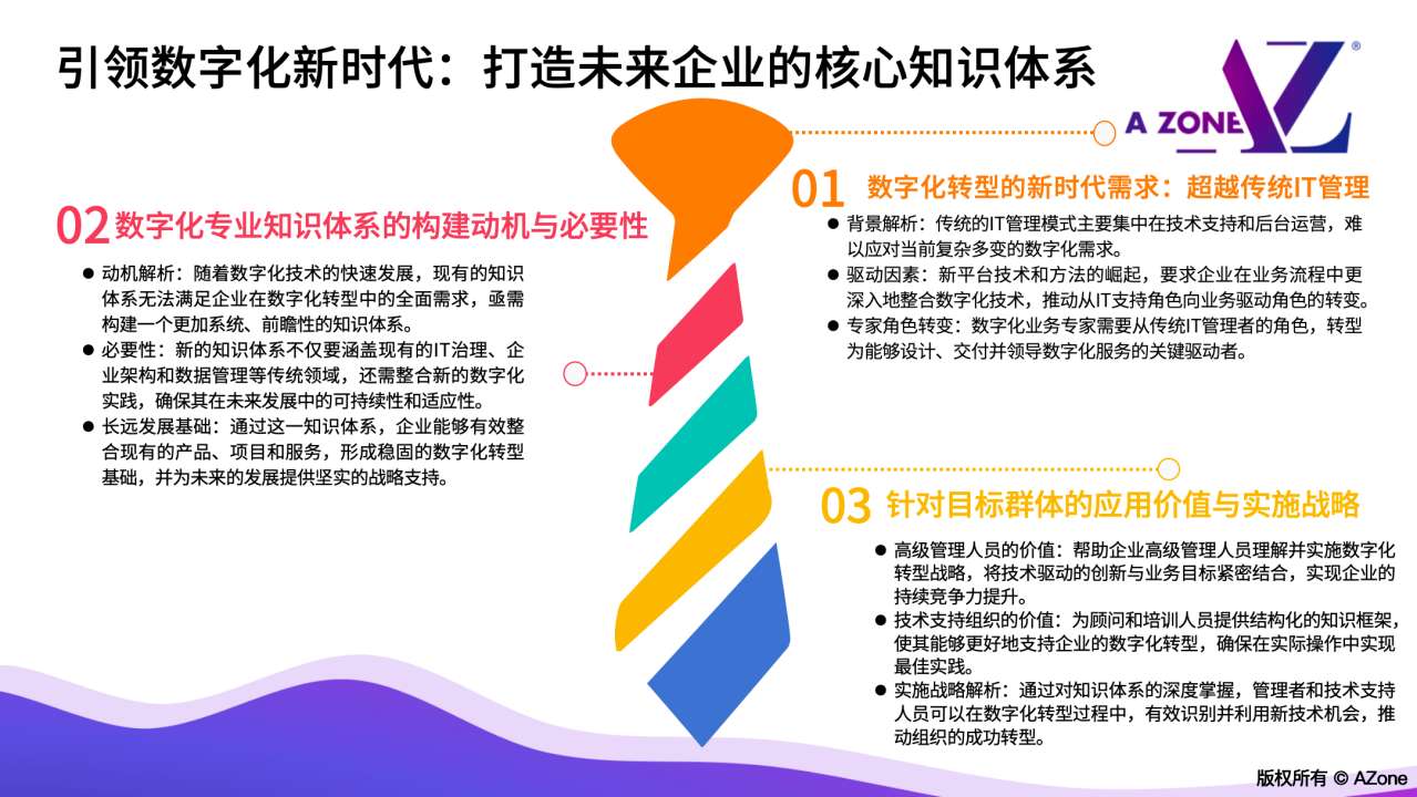 全球企业架构师协会AEA®中国架构师培养中心。AZone®架构院(Architects Zone®)成立于2021年,是全球企业架构师协会(Association of Enterprise Architects®)中国代表处的下设架构师培养中心,承担架构学院的工作职责。 AZone®架构院注重思想和最佳实践分享,倡导AEA®社区协作的传统,通过架构学院激励并赋能企业架构师进行终身学习并与企业架构生态系统中各个利益相关方协作,追求持续卓越;同时架构研究院由前瞻性技术进步和行业实际需求驱动,为可持续的企业架构师社区保驾护航。