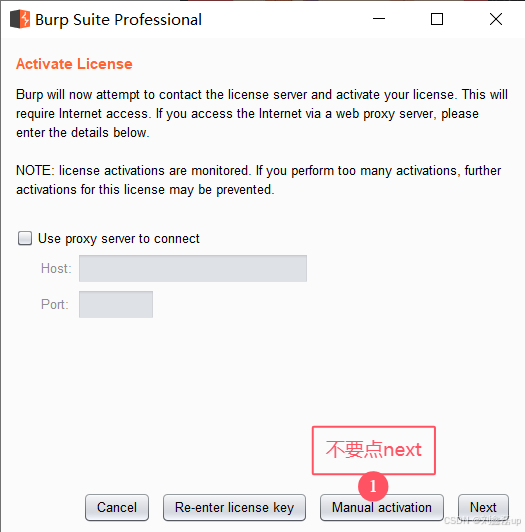 第三步:将License内容复制到——>Burp Suite Professional中——>【Manual activation】
