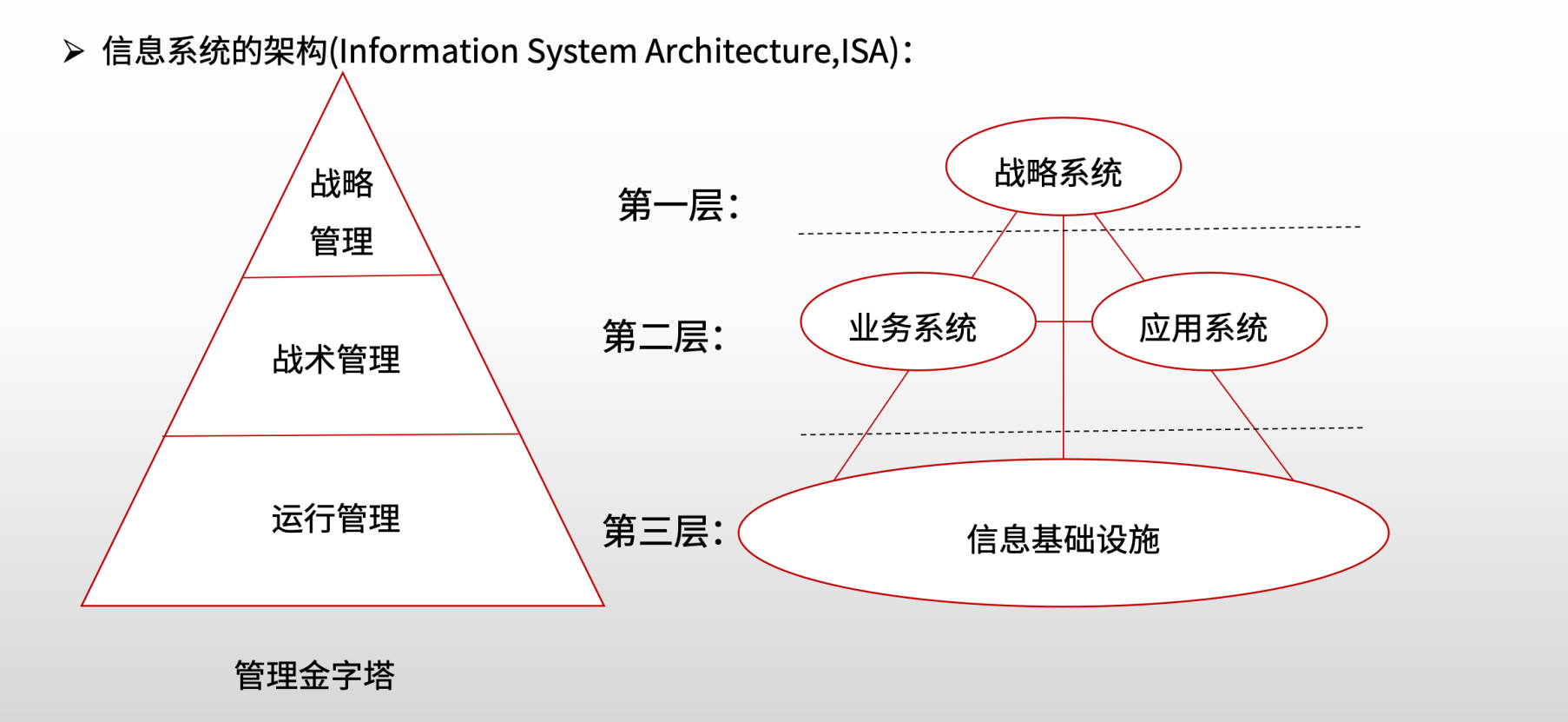 - 应用:企业资源规划系统(ERP)、战略管理信息系统、大数据分析平台