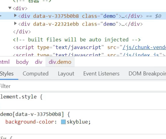 仅需要在我们style标签 加一个属性scoped即课解决,它的原理就是会给你这个组件标签动态生成一个随机生成的属性,然后配合你这个css类名加上属性选择器达成只属于你的样式