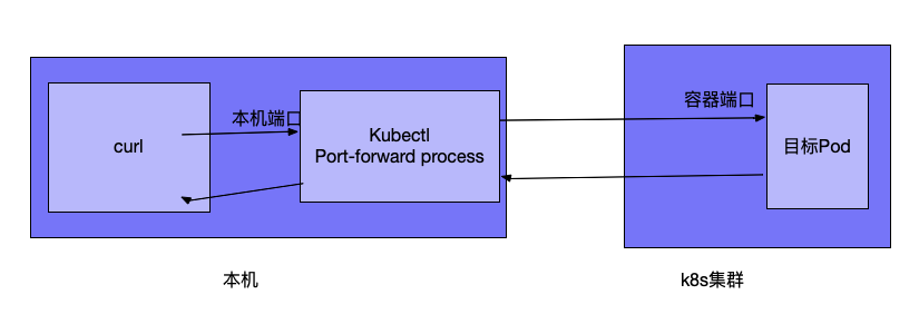 $ kubectl logs {pod名字} -c {容器名称}在 pod 调试中你可以使用 kubectl expose 命令创建一个 service,以便在外部访问到这个pod。但是在实际开发调试中,你如果不想创建一个service来与某个特定的 pod 通信,还可以通过本地转发的方式来进行访问。比如在本机 kubectl 中,可以不登录 k8s 集群的情况下,本地进行调试 pod