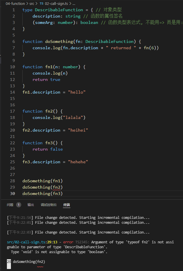 未调用的函数检查: 运算符号 < 不能用在一个 '() => number' 和 number数字之间.