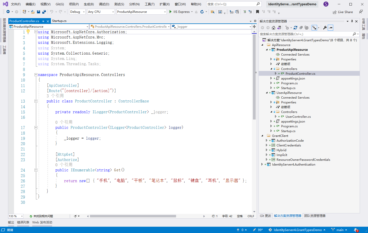 GrantClient - 两个资源服务(WebApi:UserApiResource端口8000,ProductApiResource端口9000)文件夹