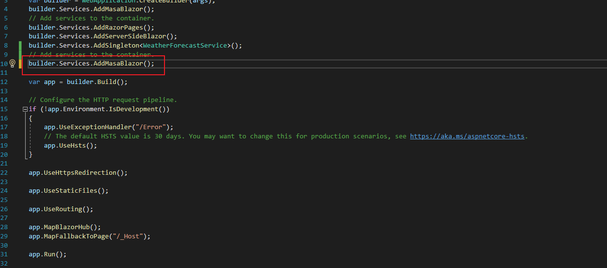 在 Program.cs 中添加 Masa.Blazor 相关服务