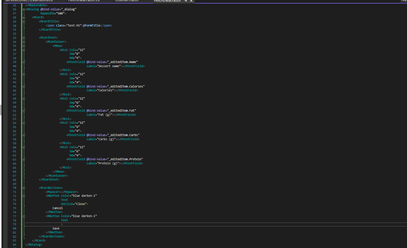 我们先建一个Fetch.razor页的分部类,定义部分代码