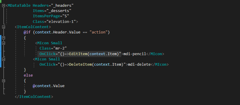 接下来我们给数据表格的Action操作列增加OnClick点击事件