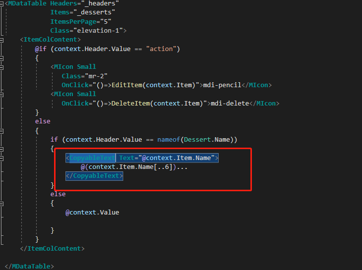 我们直接将示例代码拷贝至Shared/MainLayout.razor页面中的MAppBar组件中即可