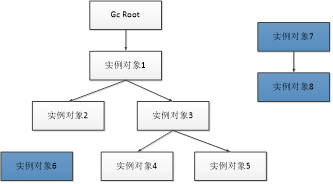 如图5-1-8所示,颜色较深的节点(实例对象6、实例对象7、实例对象8)就是可以被垃圾回收的节点,因为这些节点已经被引用了。