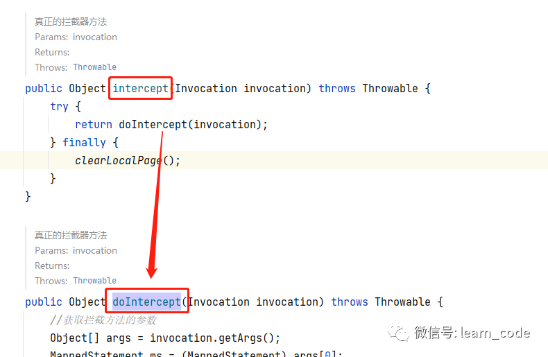 通过代码追踪我们看到Interceptor的intercept方法是在Mybatis的一个org.apache.ibatis.plugin.Plugin类的invoke方法中调用的,而这个Plugin类实现了JDK的java.lang.reflect.InvocationHandler接口,这是JDK代理接口。