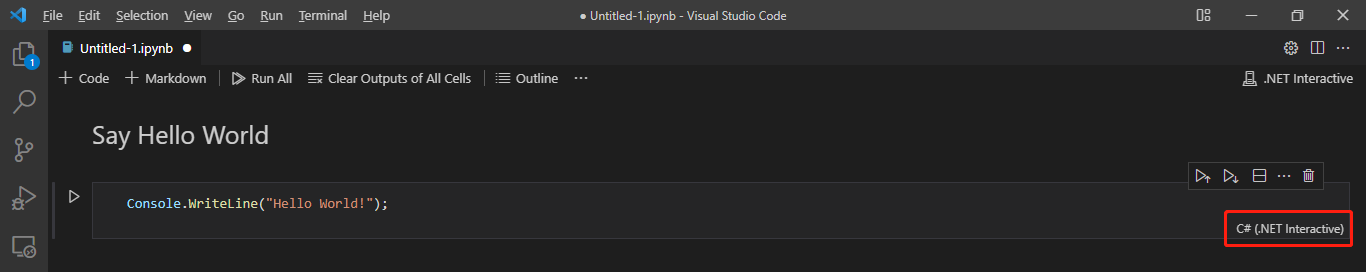 使用热键 Ctrl+Shift+P,然后选择 .NET Interactive: Create new blank notebook