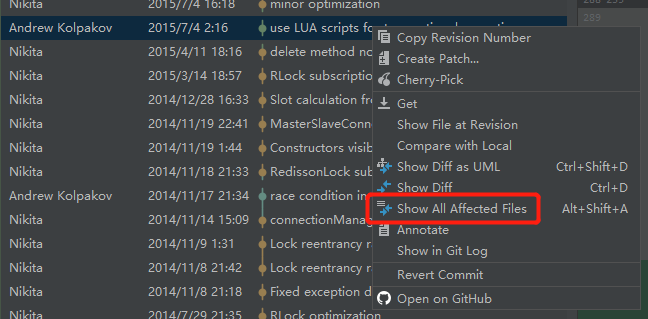 比如上面这个界面中,就可以看到 RedissonBaseLock.java 这个文件,由谁在什么时候进行过变更,以及变更对应的 commit 信息是什么。