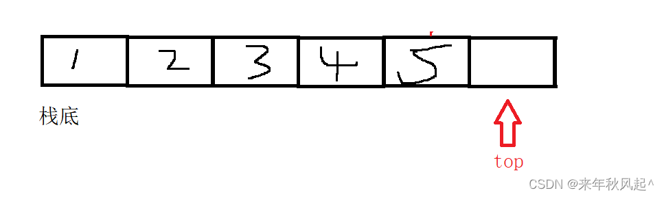 在栈的初始化时,top指针初始值设置为0,每次添加数据后,top++,所以top一直指向着栈内最后一个数据的下一个数据节点。(图解如下)