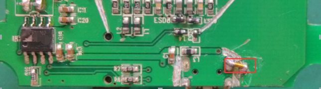 整改措施:我们对其MCU与主板MCU之间的通信信号对地并联ESD(型号:ESD5D100TA),再进行空气放电的时候,发现有点提升,但是并不能达到客户的要求。