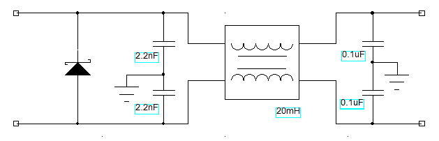 1.将低压端口电源滤波电路0.1uF的Y电容更换为1uF,具体原理图如下;