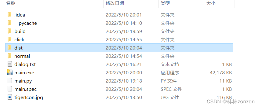 打包完成后,在生成的dist里面可以看到main.exe文件