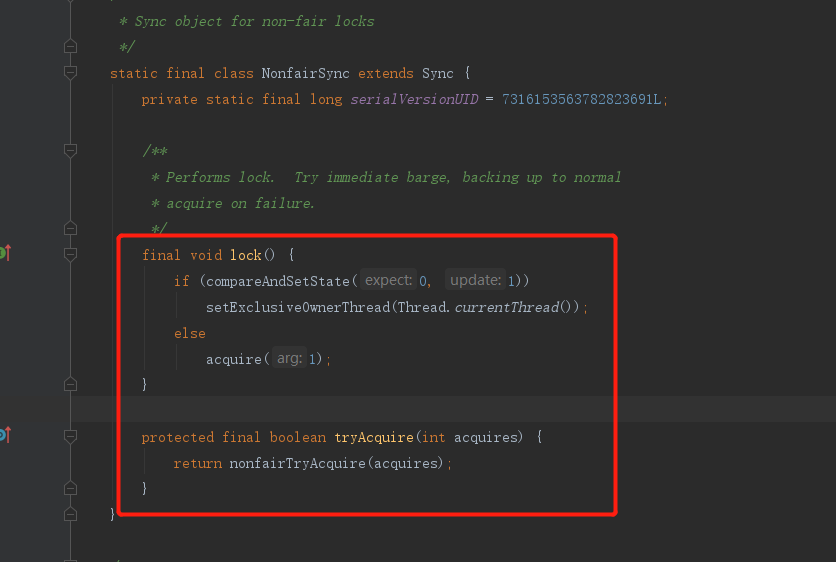 我们就来看一下Sync的非公平锁的实现NonfairSync。