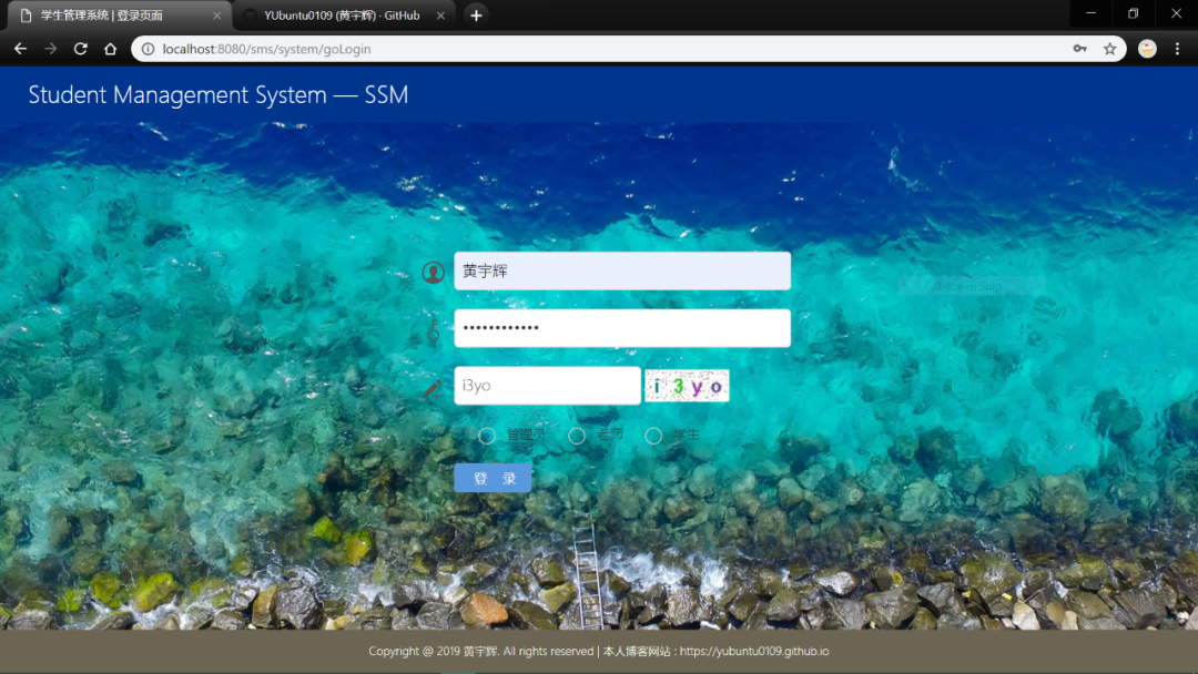 数据库中默认的管理员身份信息 : 账户名 : 黄宇辉 , 密码 demo0109