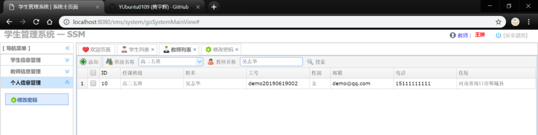 教师 : 仅具有学生信息管理模块的所有权限,且在教师信息管理模块中只具有查询及添加信息的权限