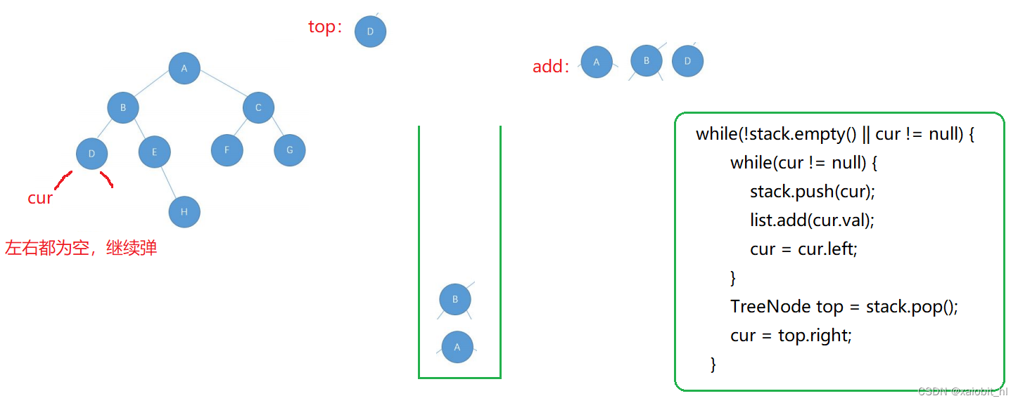 - while(!stack.empty() || cur != null) {