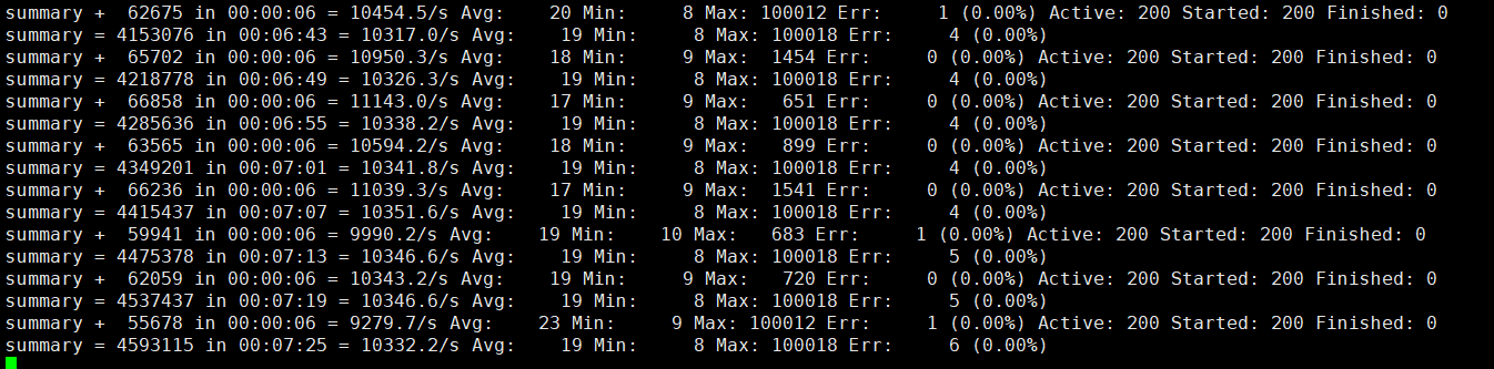| test1 | 10300左右 | cpu消耗90%左右 | 并发200,持续压测 |