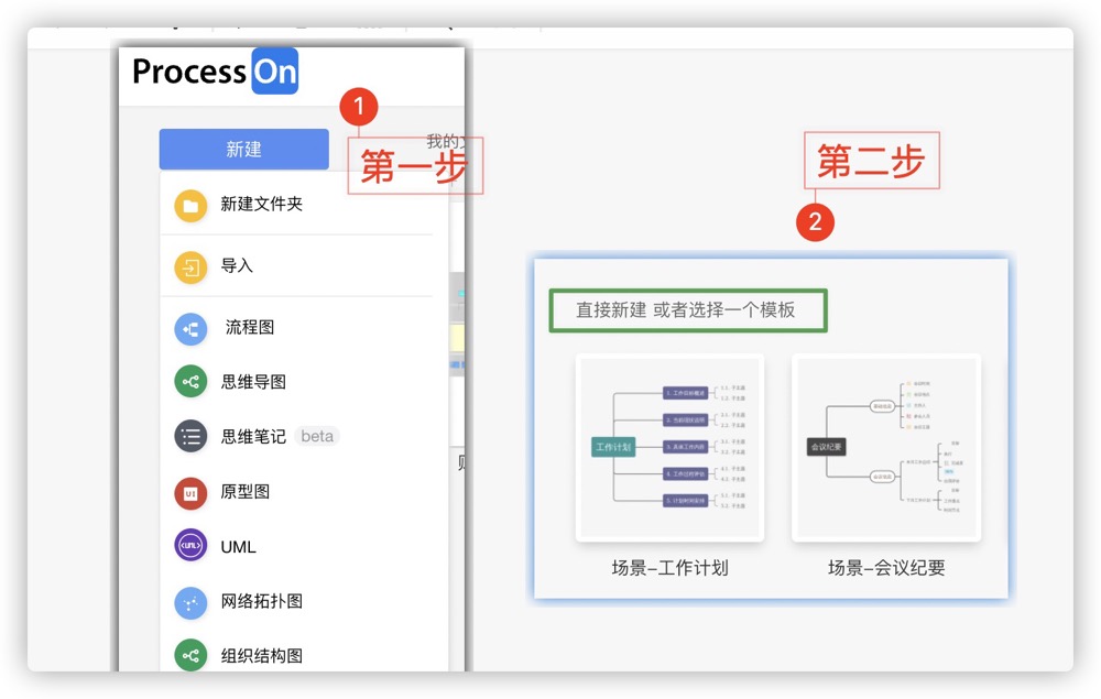 第一步:登录ProcessOn,打开个人中心,选择”新建“