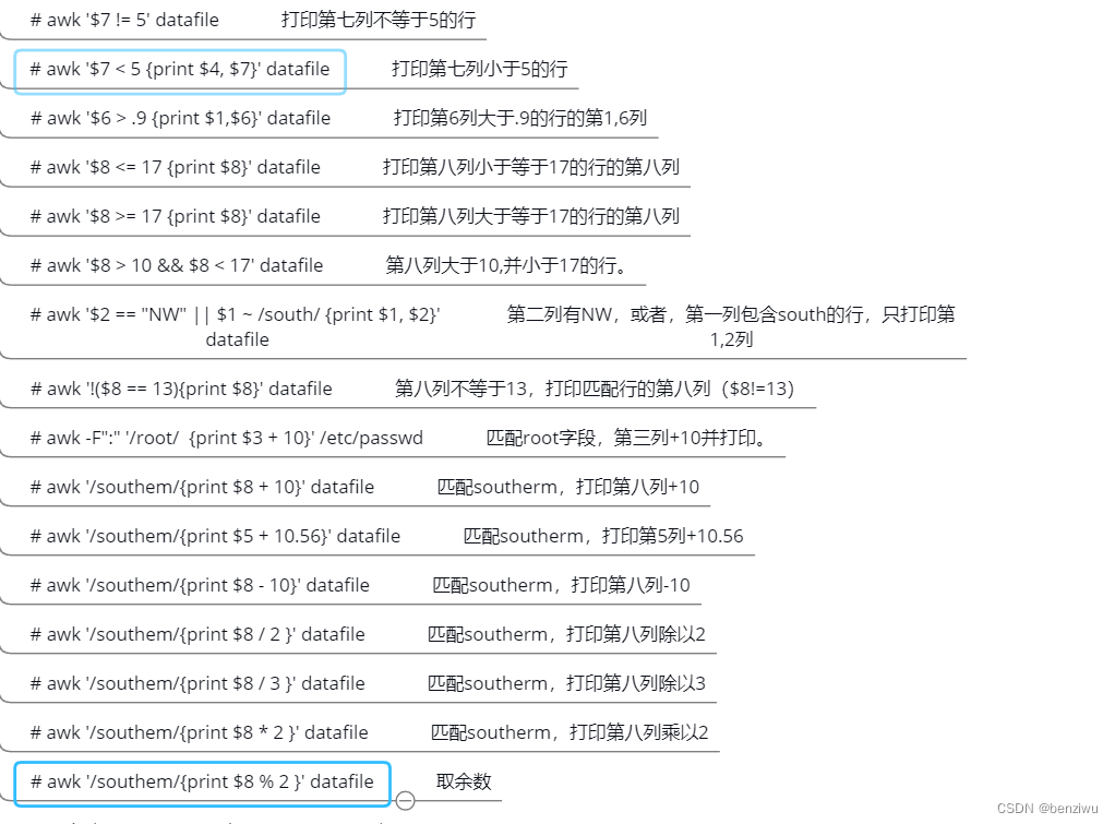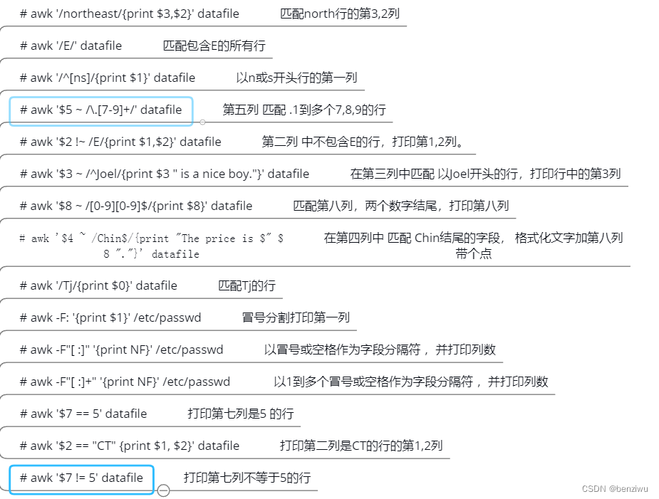 - [root@mycat ~]# awk '$0 ~/^root/' /etc/passwd