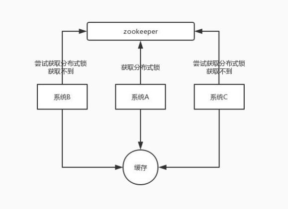 某个时刻,多个系统实例都去更新某个 key。可以基于 zookeeper 实现分布式锁。每个系统通过zookeeper 获取分布式锁,确保同一时间,只能有一个系统实例在操作某个 key,别人都不允许读和写。