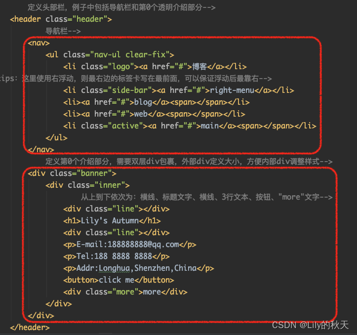 整个header如下,包括导航栏和第0个透明介绍部分: