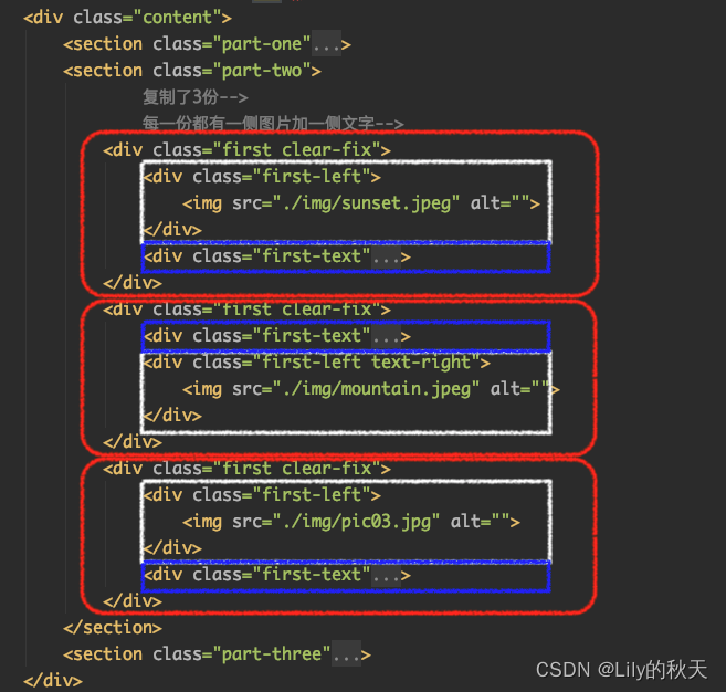 - <!-- 每一份都有一侧图片加一侧文字-->