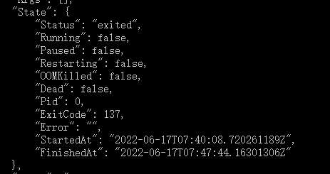 # 查看指定容器退出详情,是否与 oomkilled 等有关