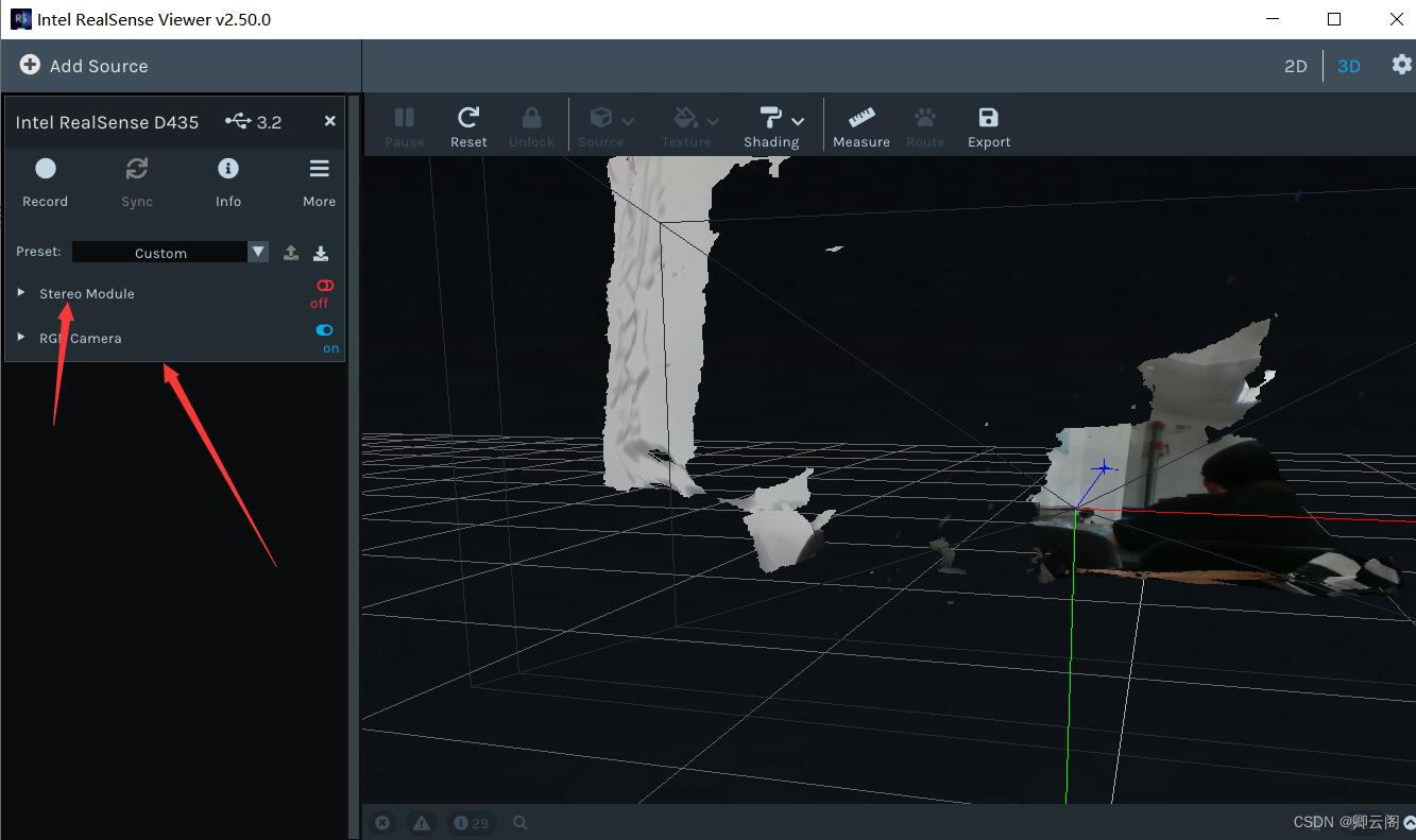 RGB Module可以显示RGB影像,Stereo Module可以开启深度图显示