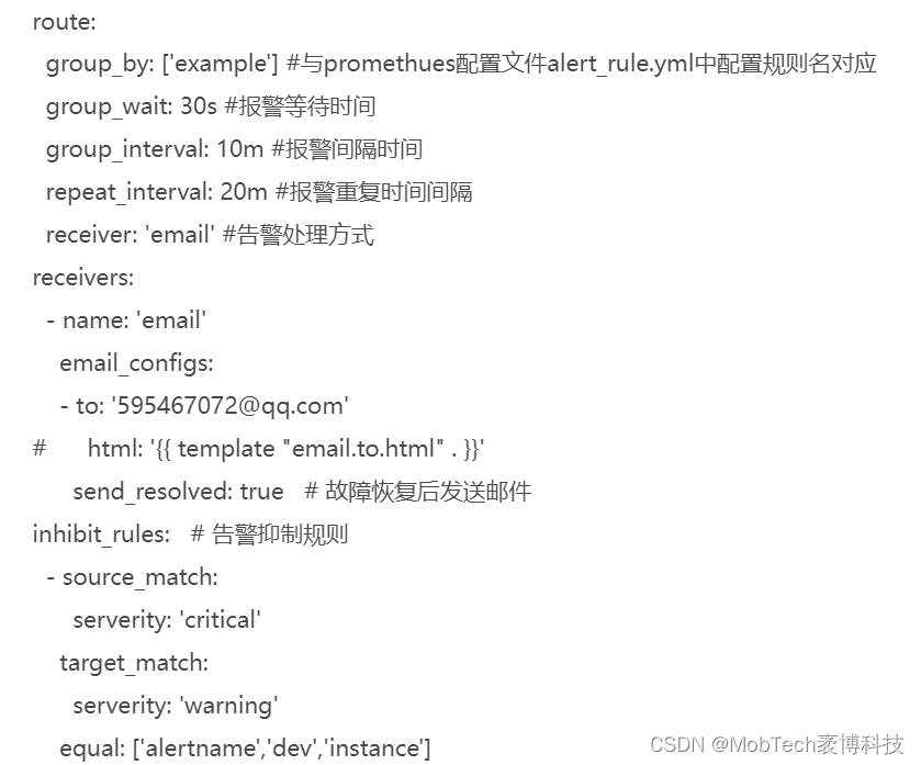 alertmanager收到告警通知后,会根据当前配置的方式,如邮件等,发送告警信息: