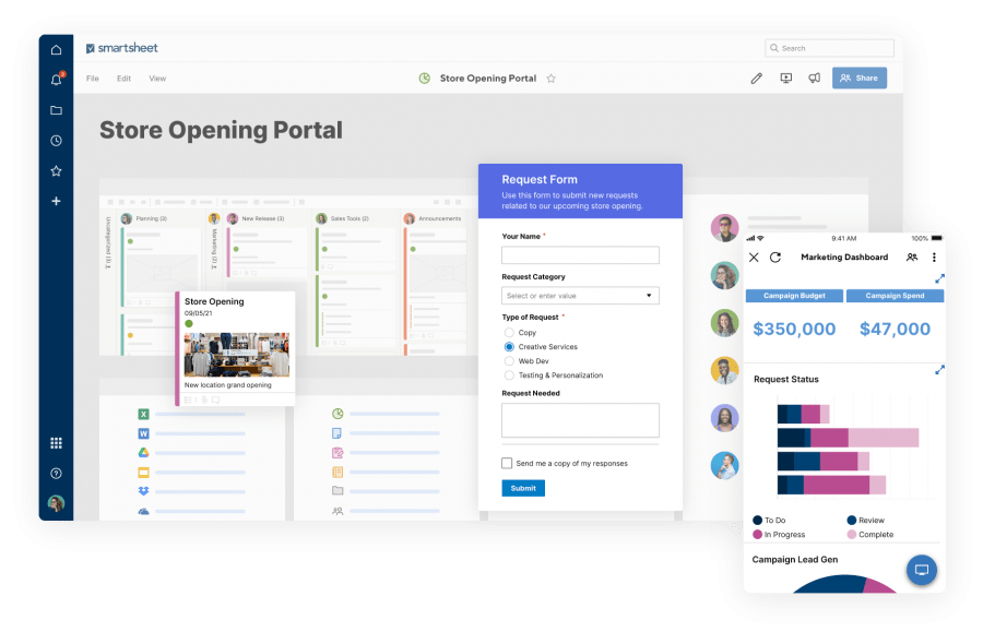 有效地将电子表格的易用性与可视化时间线管理、协作文件共享和讨论以及自动化工作流功能相结合。