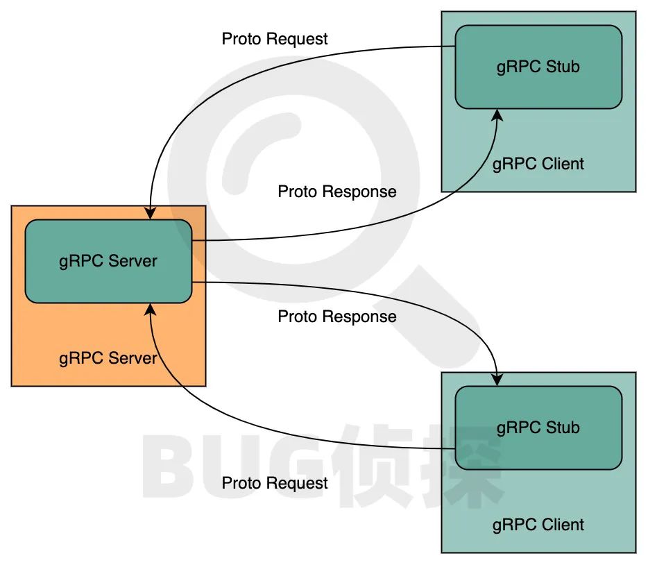 client 拥有一个 stub (桩)它提供与Server 相同的方法,stub 由 gRpc自动生成。 Stub 在后台调用gRPC 框架通过网络与 server 交换信息 。由于 stub 的存在,client 和 server 现在只需要关心实现业务 的核心逻辑 。