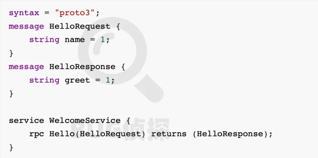 在上的示例文件中,定义了Hello 方法(函数),它以 HelloRequest 作为输入,并返回一个HelloResponse ,其中 HelloRequest 仅包含一个字符串 name, HelloResponse 也有一个字符串greet 。从类似这样的原始文件中,由协议缓冲区编译器根据编程语言,生成server 和 client 的 stub 代码。