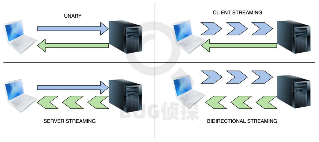 双向流 bidirectional streaming:客户端和服务器将平行发送多个请求和响应,它非常灵活并且是 非阻塞的,这意味着,任何一方都不需要在发送下一条消息之前等待响应。