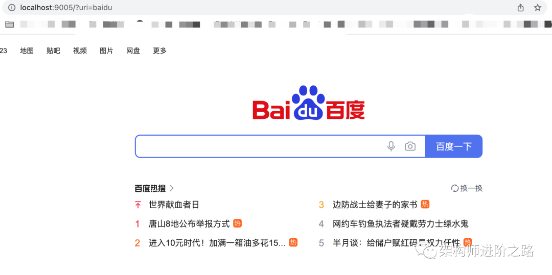 访问当前项目并在uri地址后面增加一个uri=baidu的一个参数,让其跳转到baidu的主页,可以看到gateway生效了。
