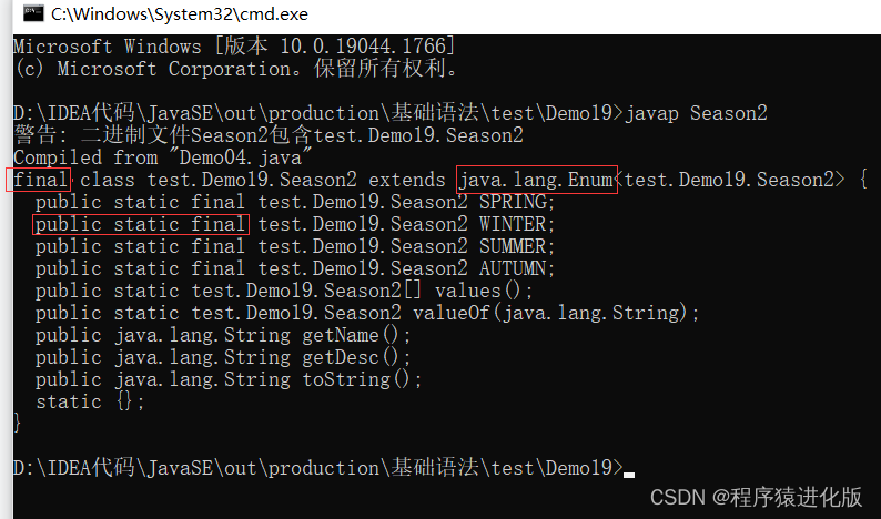public static final Season2 SPRING = new Season2("春天", "温暖"); 等价于 SPRING("春天", "温暖");