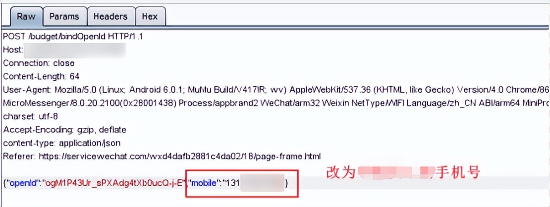 继续抓包,看到shouj号和openid在请求包中,因为是无效的shouj号,虽然可以绕过验证码校验,但是肯定不能是不能进入系统的嘛,此时想到去网上找一个有效账号